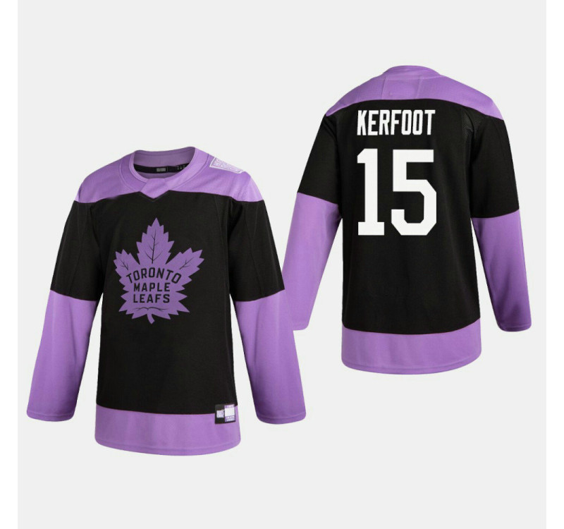 - Maple Leafs Alexander Kerfoot #15 Hockey Fights Cancer Practice Black Jersey