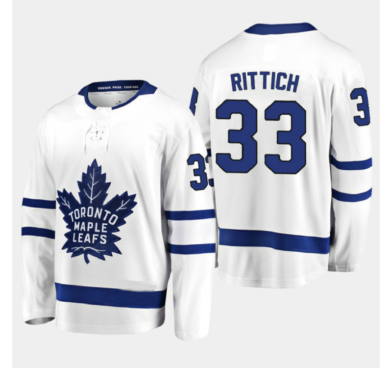When you' re watching the on-ice action, you need a jersey to match. With this Men's Toronto Maple Leafs David Rittich #33 Away 2021 White Jersey you get just that! This premium jersey is made for the loyal Toronto Maple Leafs fan like you and takes inspiration from what your team wears on gameday. Available in traditional colors, this Auston Matthews jersey possesses a more adjusted fit and mesh panels to enhance your comfort no matter where you enjoy the game!