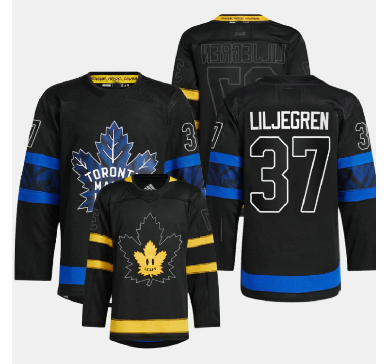 - Timothy Liljegren #37 Toronto Maple Leafs Black Jersey 2022 Alternate Drew house Authentic Reversible