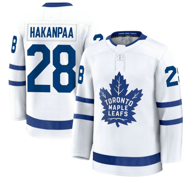 When you' re watching the on-ice action, you need a jersey to match. With this Toronto Maple Leafs #28 Jani Hakanpaa Away Premium White Jersey you get just that! This premium jersey is made for the loyal Toronto Maple Leafs fan like you and takes inspiration from what your team wears on gameday. Available in traditional colors, this Auston Matthews jersey possesses a more adjusted fit and mesh panels to enhance your comfort no matter where you enjoy the game!