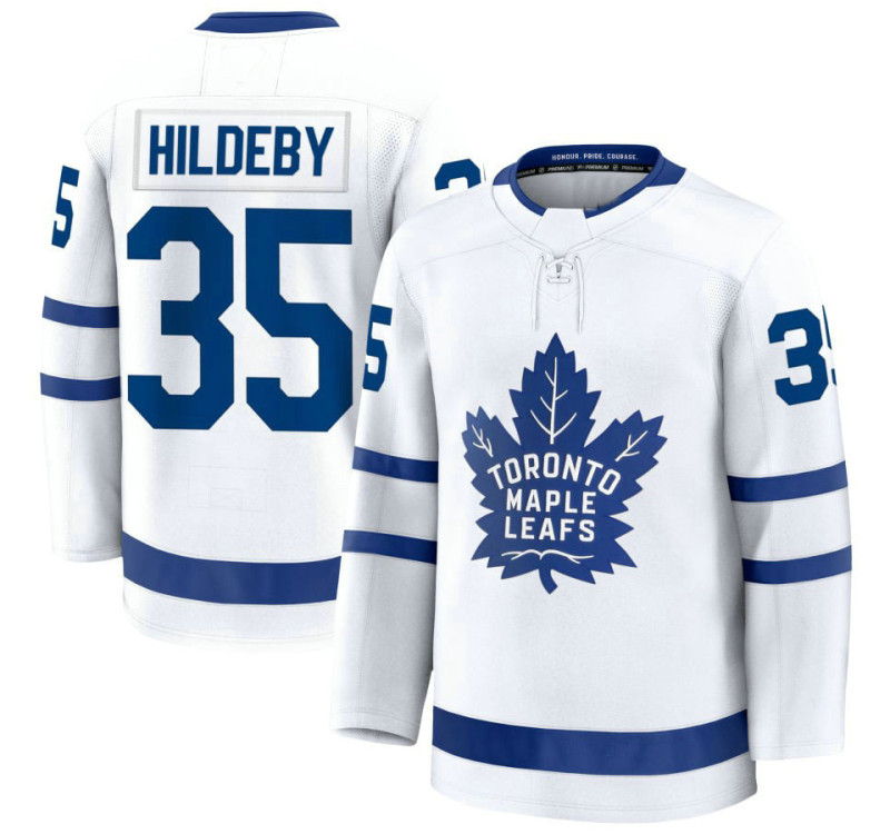- Youth Toronto Maple Leafs #35 Dennis Hildeby Away Premium White Jersey